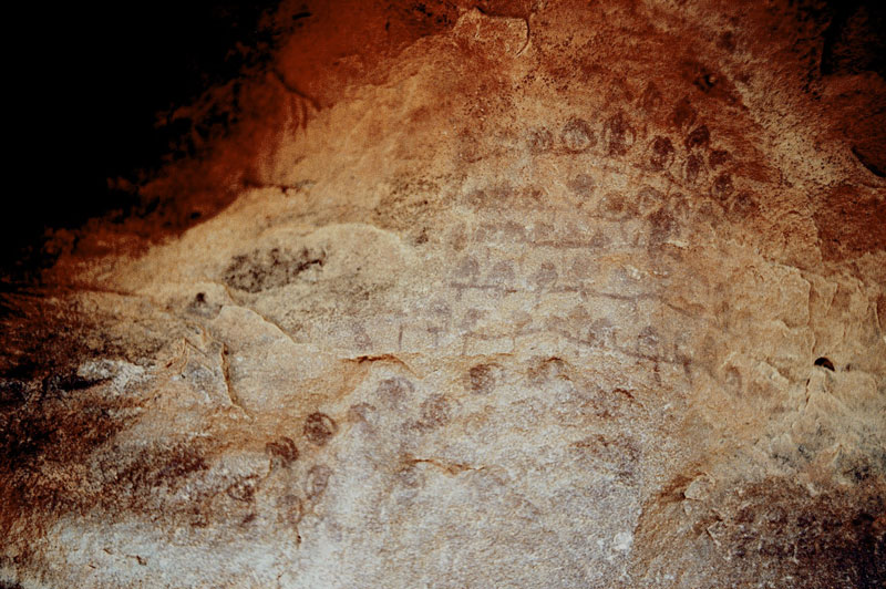 Les abris à peintures s’étendent sur trois cents mètres. Relevé des gravures les plus représentatives d’Ouest en Est.