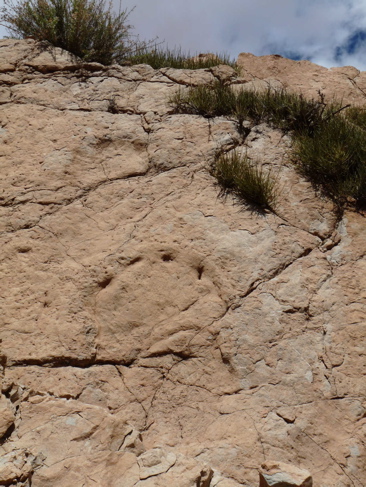 31°25,90'N – 06°00,30'W. Altitude 1585m. Deux empreintes de sauropodes.