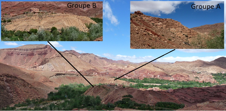 31°25,90'N – 06°00,00'W. Altitude 1587m. Empreintes de sauropodes et autres petites peu indentifiables.