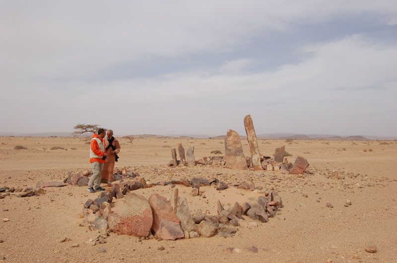 Km 7,5. 25°13,55'N - 12°22,95'W. Tumulus à bétyles sur la gauche de la piste et divers.